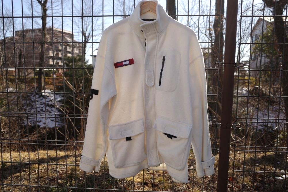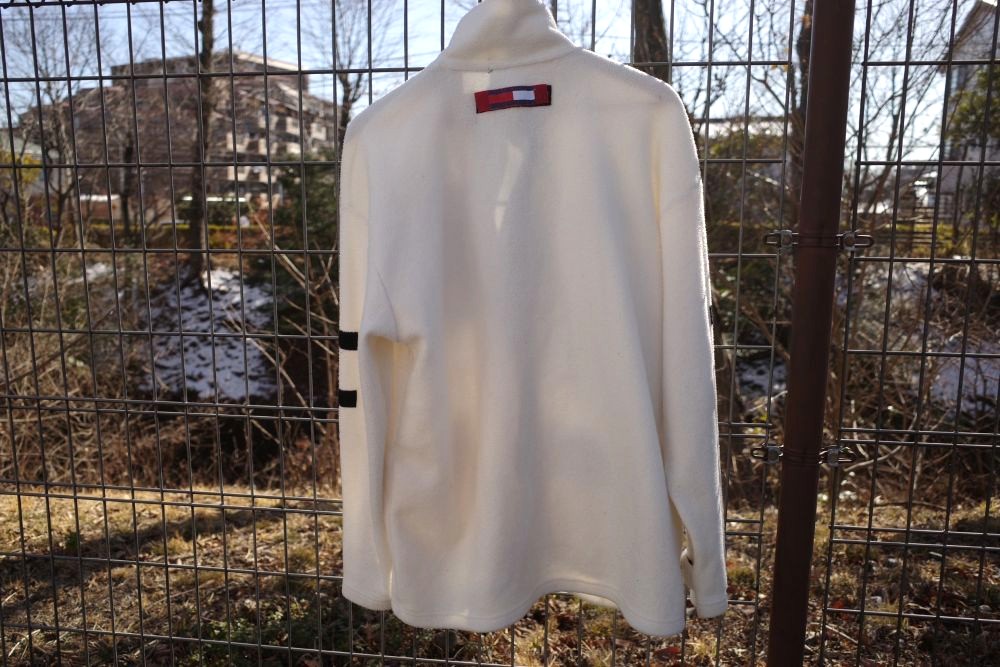 白なのでちょいちょい汚れはついてる。日常でテキトーに着る枠ですね。ジーンズだとちょいラフになりすぎる気がするのでオールホワイト、もしくは茶系のパンツが合いそう。なんにせよカジュアルよりはスラックスなど、キレイめなコーデに取り入れるのが良いでしょう。真冬であればコートのインナーに入れるのも面白そう。