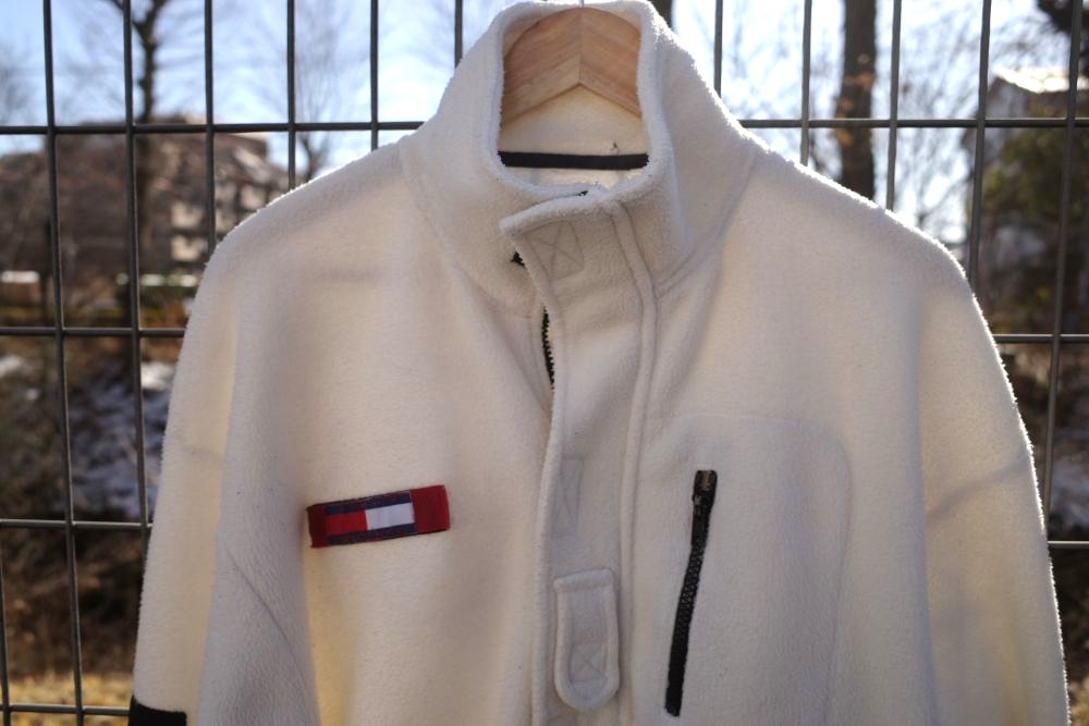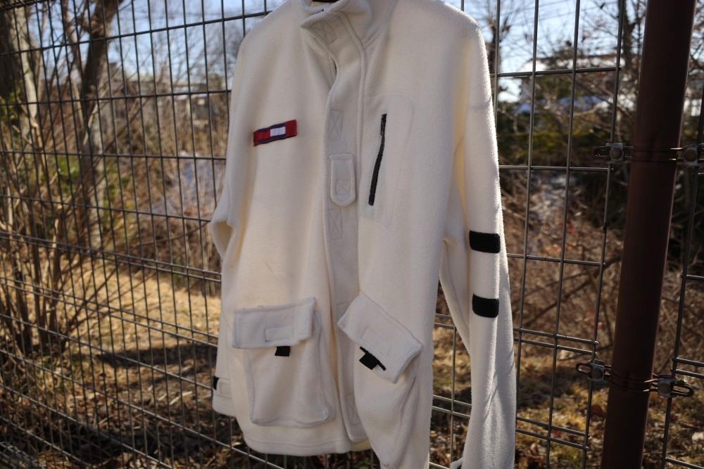 それでいて生地はフリースというごちゃ混ぜ感が面白い。しかし使われている色はほぼ白と黒なので散らかった印象にはならず、デザインとしてしっかりまとまっている。