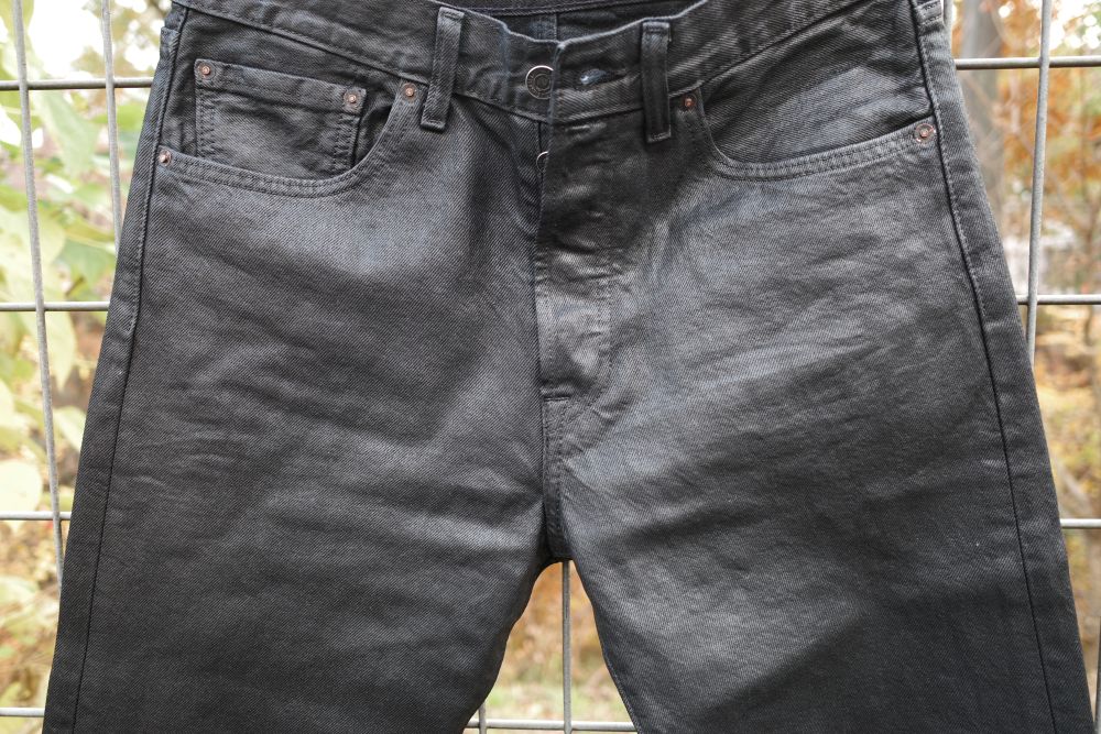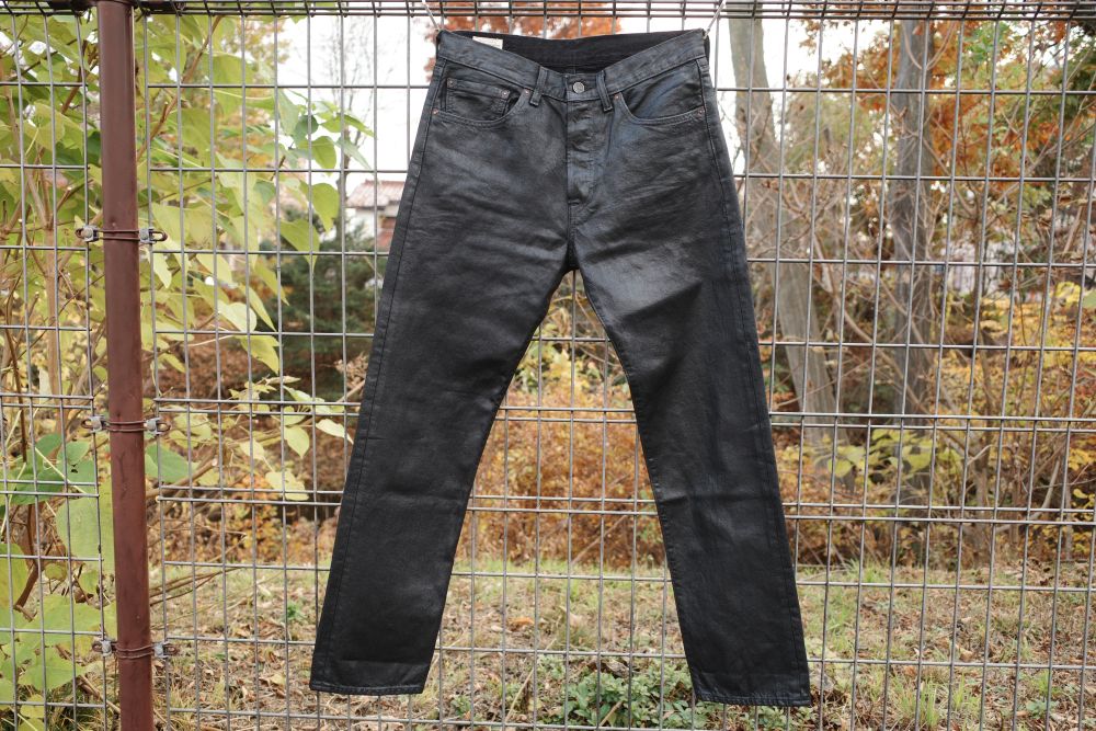 biotopが【Levi’s】に別注したジーンズで、パンツ全体に鈍く光るワックス加工がしてあるのが特徴だ。